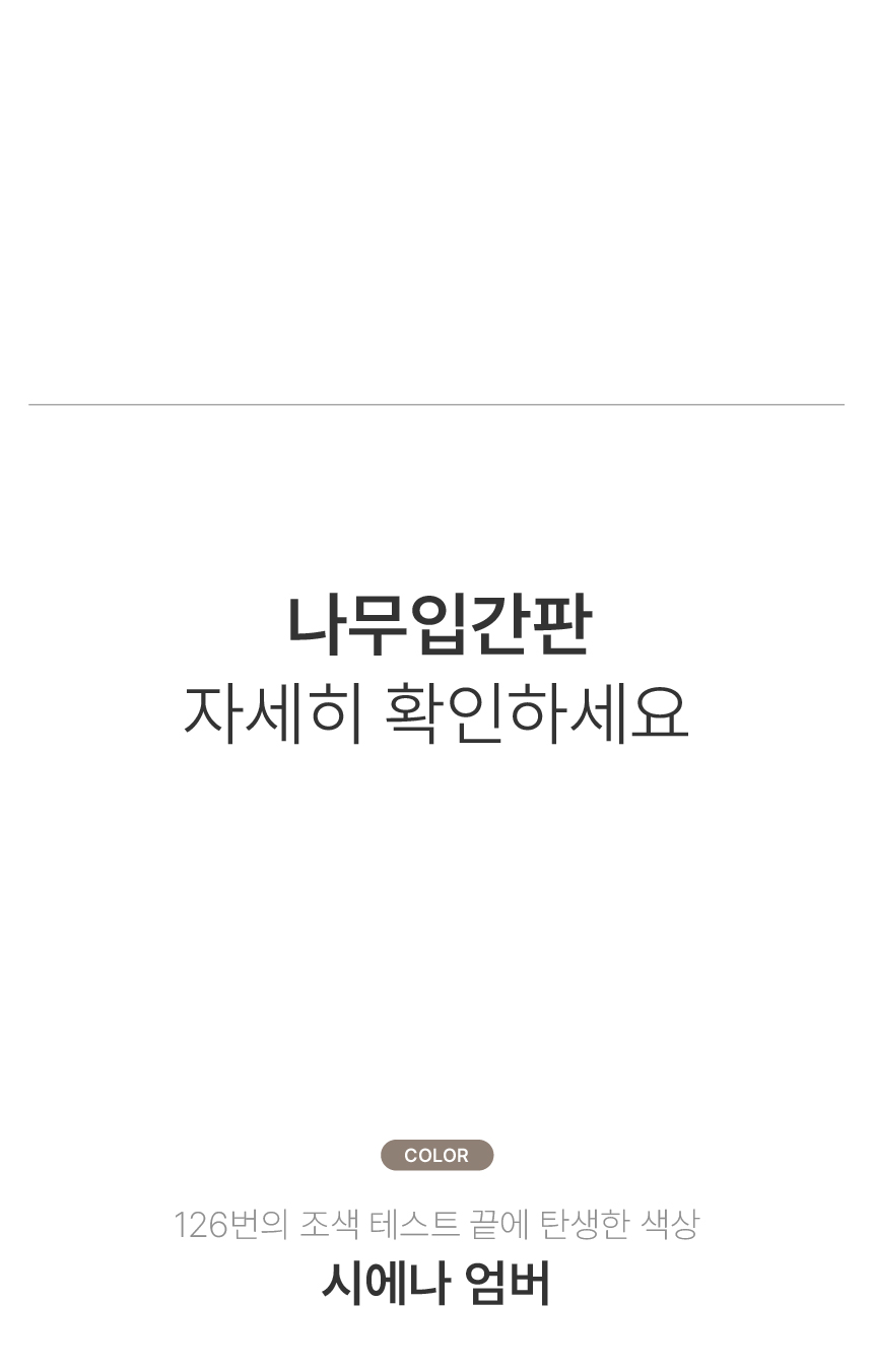 B/BB 최고등급 자작나무합판에 총 3번의 마감작업으로 만들어진 고운 표면 위 126번 테스트로 만들어진 오일색상을 입힙니다.