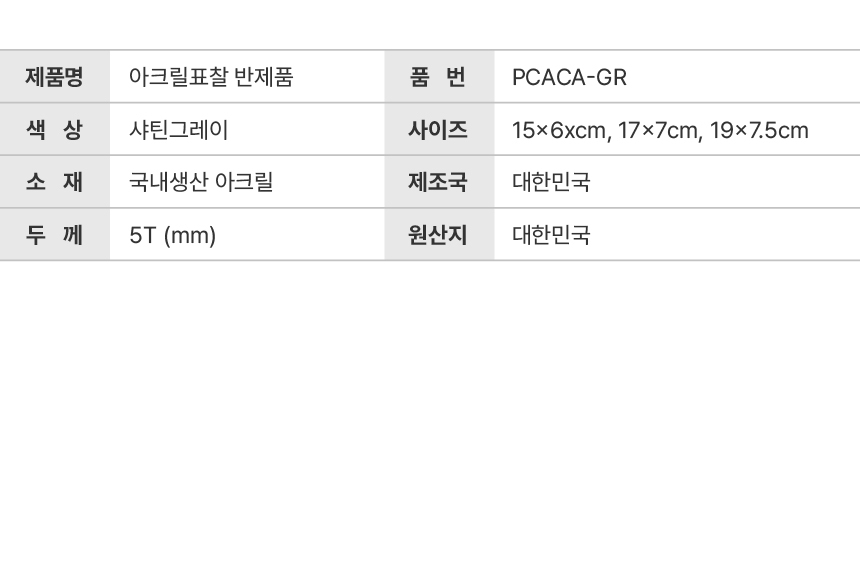 아크릴표찰 직사각 그레이 PCACA-GR