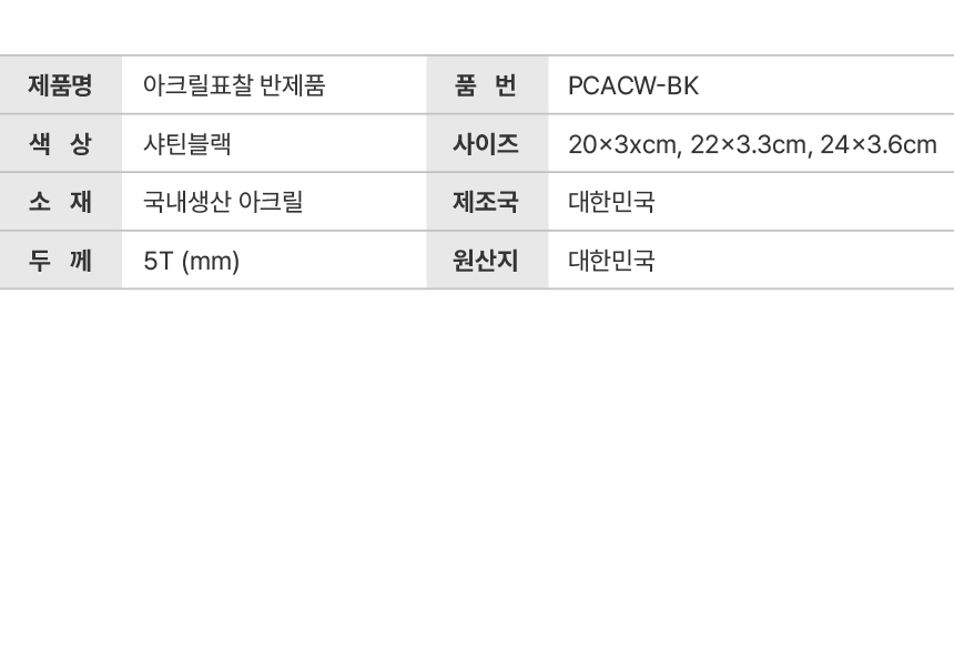 아크릴표찰 와이드사각 블랙 PCACW-BK