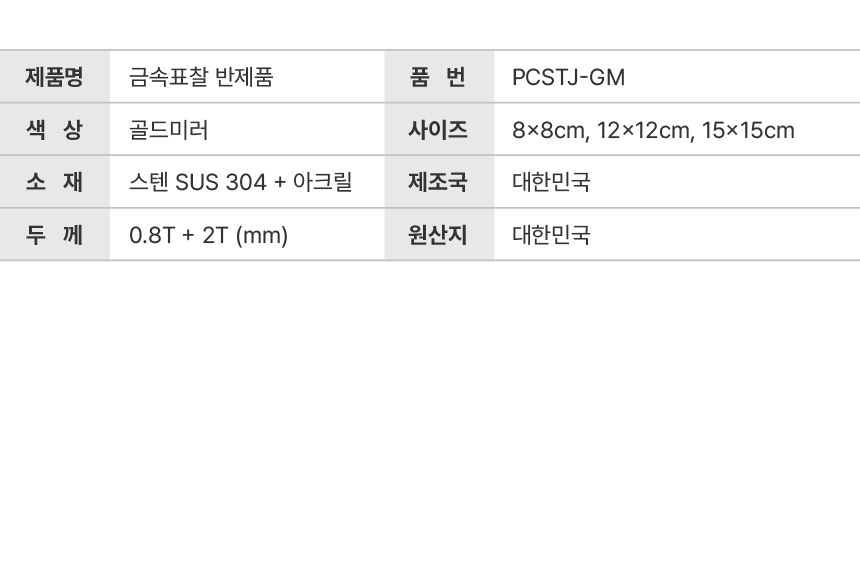 금속표찰 정사각 골드미러 PCSTJ-GM