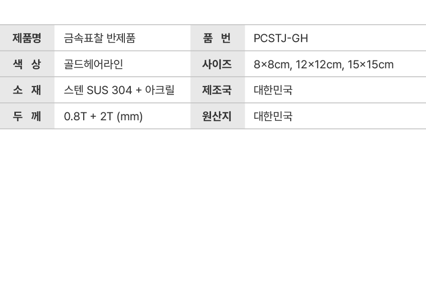금속표찰 정사각 골드헤어라인 PCSTJ-GH