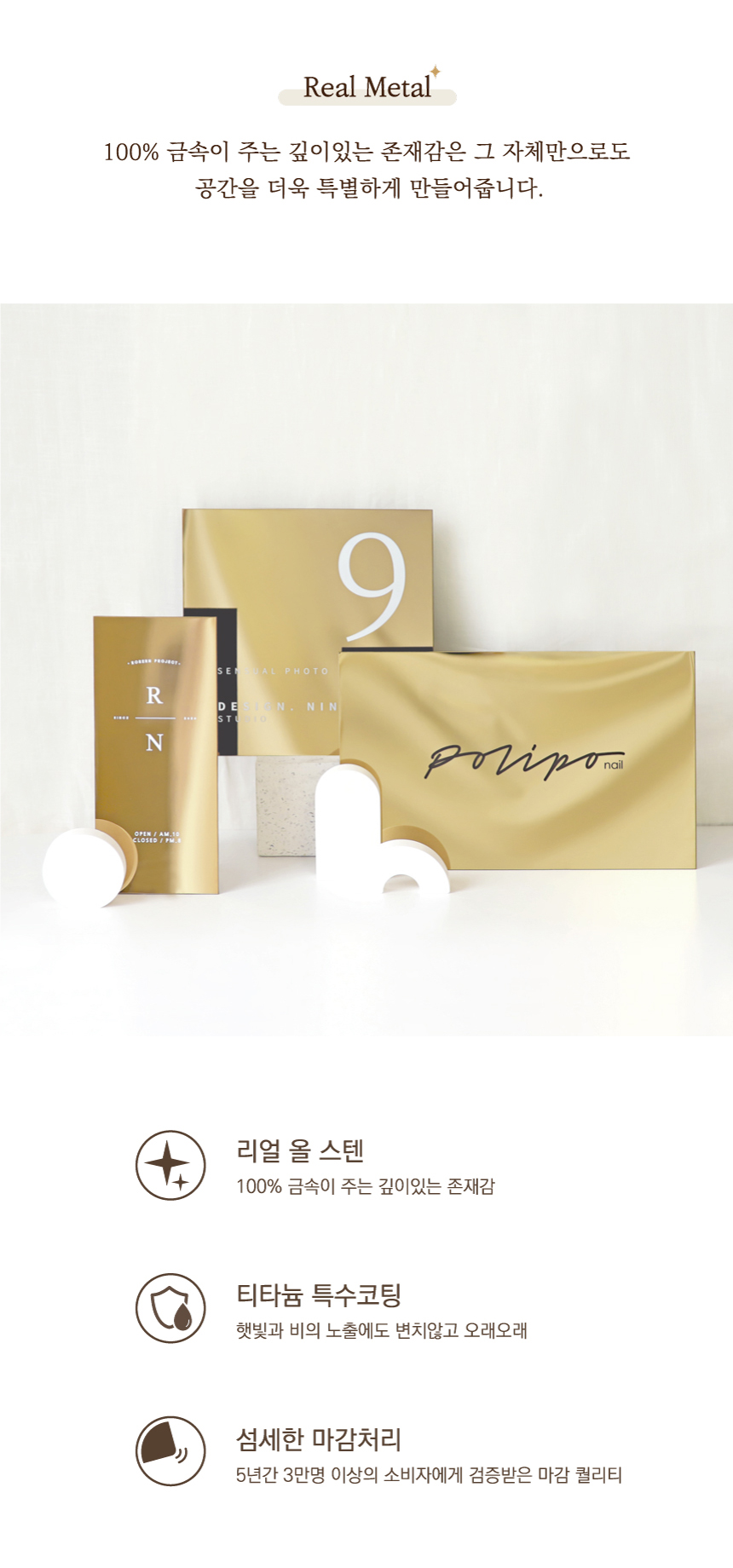 국내생산 100%, 스테인리스 304에 컬러를 입힌 금속간판으로.
